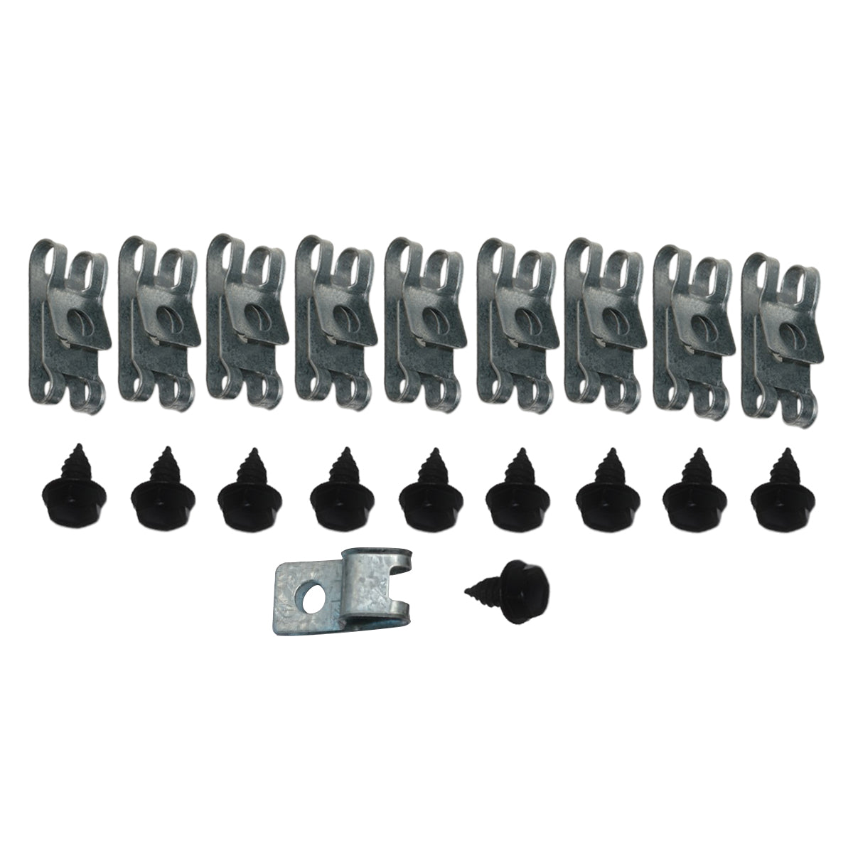 This clip kit includes all clips necessary to secure all the fuel lines to the chassis of the car: nine double clips, one R style clip, and ten bolts.