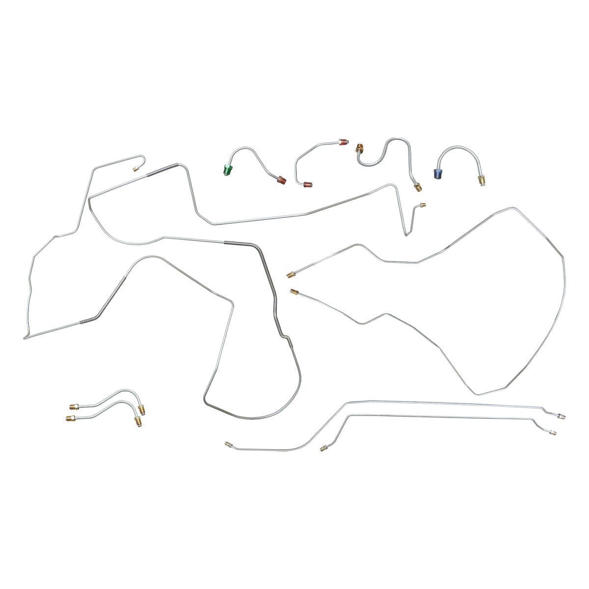 This preformed complete brake line kit will replace all the metal brake lines on your vehicle and includes the master cylinder lines, left front line and right front crossover line, intermediate lines, and rear axle lines/trailing arm lines.