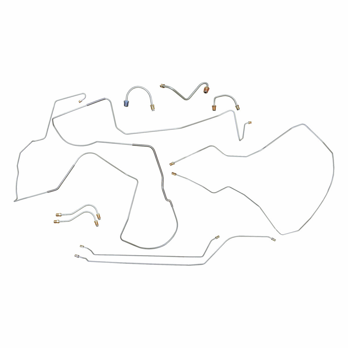 This preformed complete brake line kit will replace all the metal brake lines on your vehicle and includes the master cylinder lines, left front line and right-front crossover line, intermediate lines, and rear axle lines/trailing arm lines.