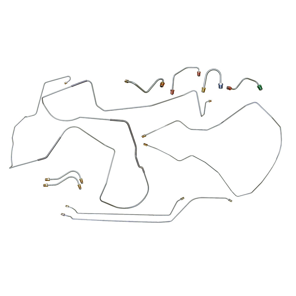 This preformed complete brake line kit will replace all the metal brake lines on your vehicle and includes the master cylinder lines, left front line and right front crossover line, intermediate lines, and rear axle lines/trailing arm lines.