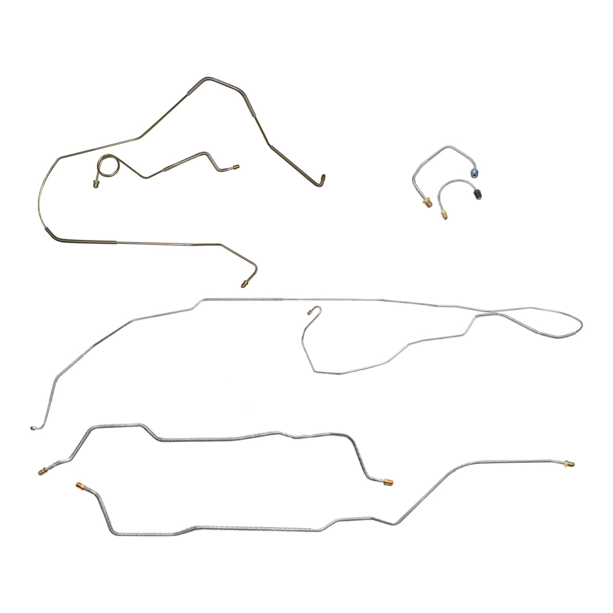 This preformed complete brake line kit will replace all the metal brake lines on your vehicle and includes the master cylinder lines, left front line and right-front crossover line, intermediate lines, and rear axle lines/trailing arm lines.
