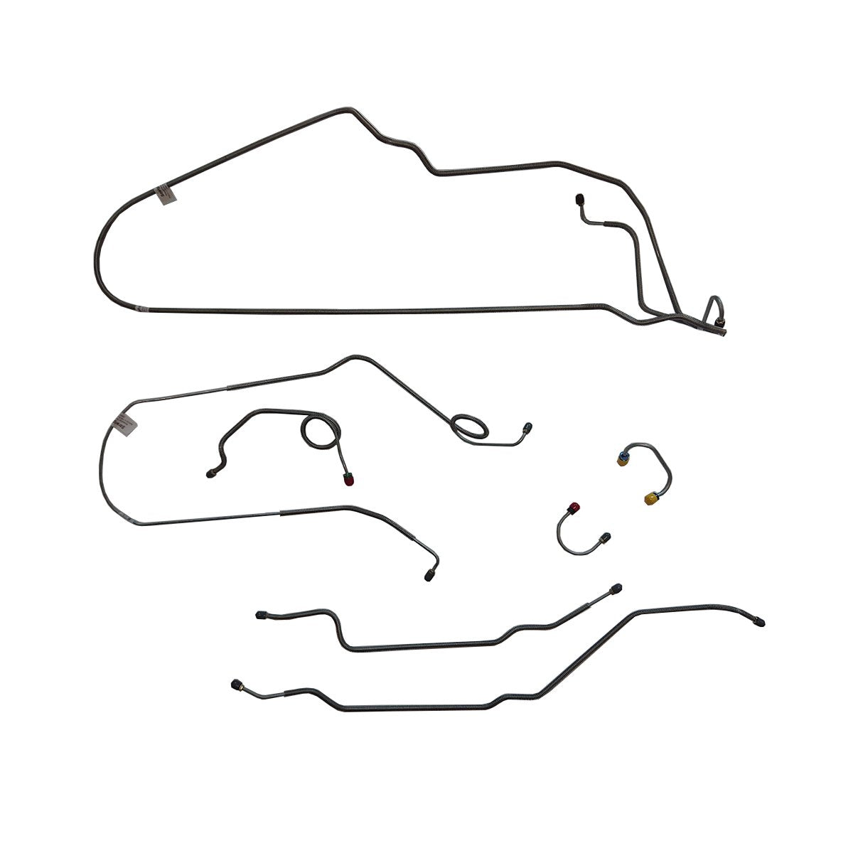 This preformed complete brake line kit will replace all the metal brake lines on your vehicle and includes the master cylinder lines, left front line and right front crossover line, intermediate lines, and rear axle lines/trailing arm lines.
