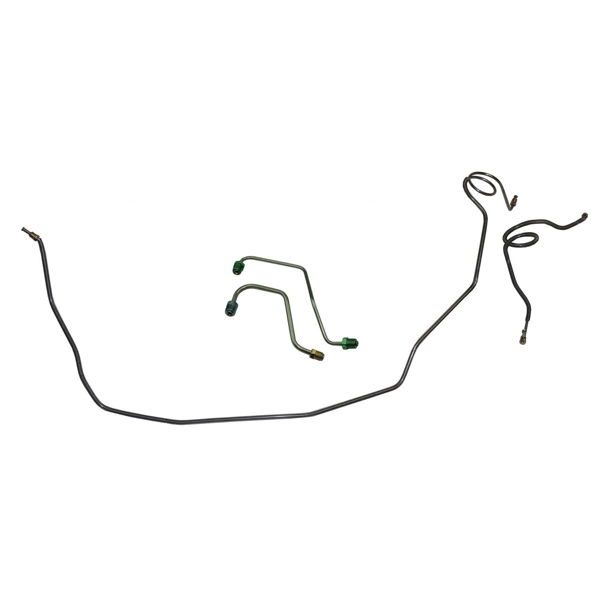 This preformed front brake line kit includes all the metal brake lines to supply the front two wheels of your vehicle and includes the master cylinder lines, left front line, and right front crossover line.
