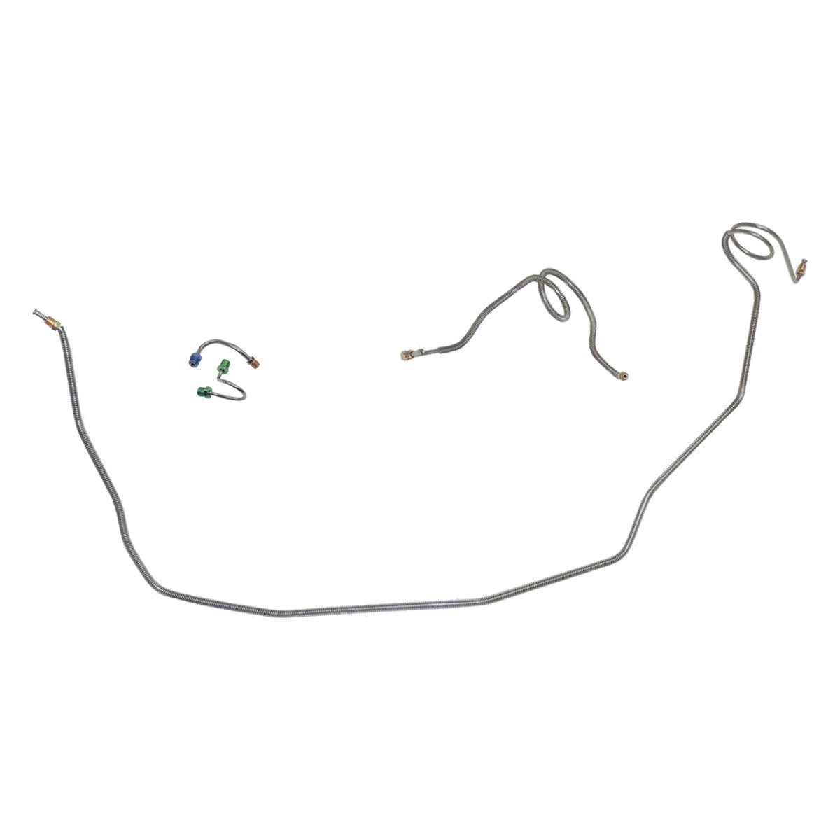 This preformed front brake line kit includes all the metal brake lines to supply the front two wheels of your vehicle and includes the master cylinder lines, left front line, and right front crossover line.