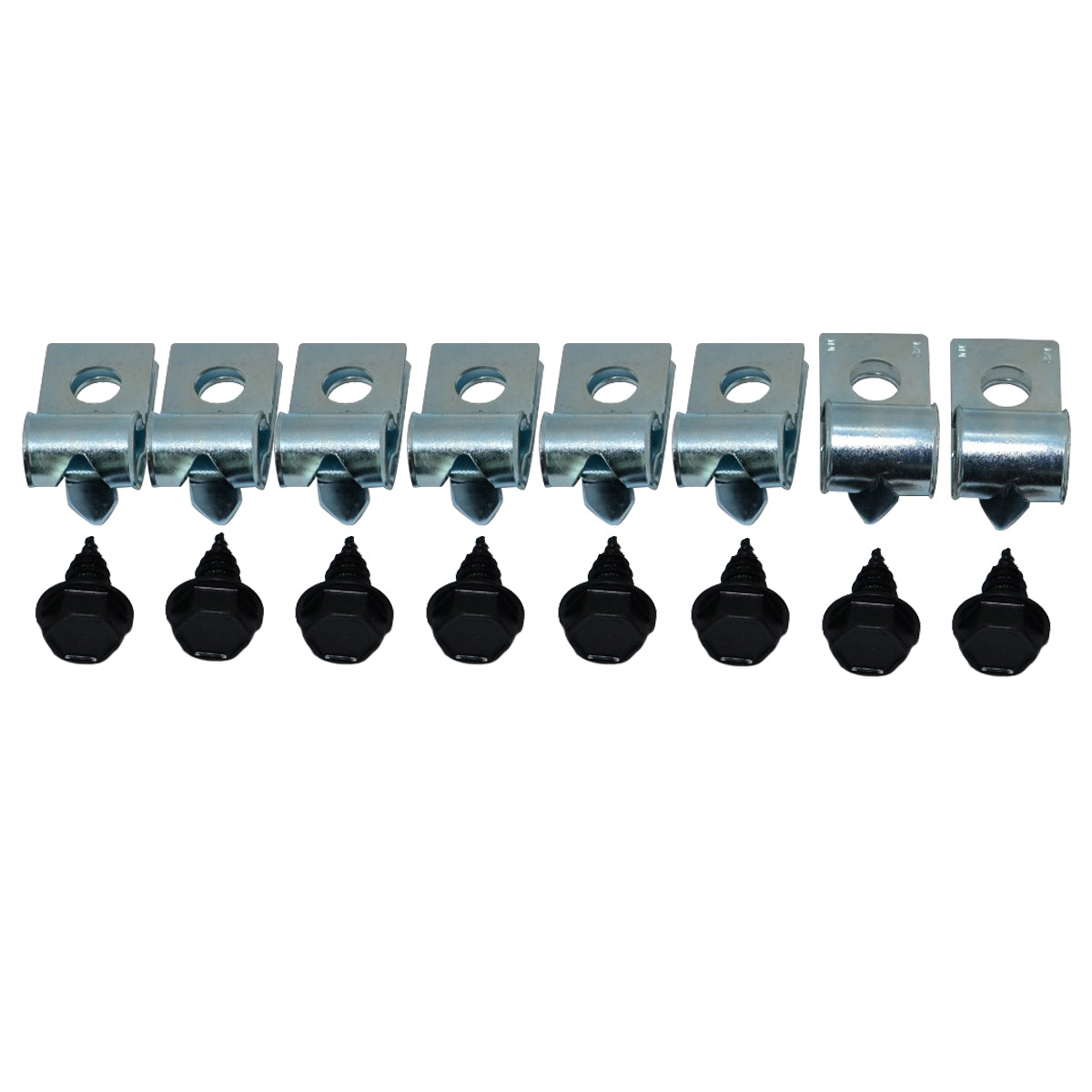 This clip kit includes all clips necessary to secure the fuel lines except the return line to the chassis of the car: eight R style clips and eight bolts.