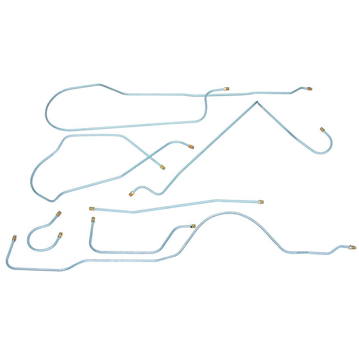 This preformed complete brake line kit will replace all the metal brake lines on your vehicle and includes the master cylinder lines, left front line and right front crossover line, intermediate lines, and rear axle lines/trailing arm lines.