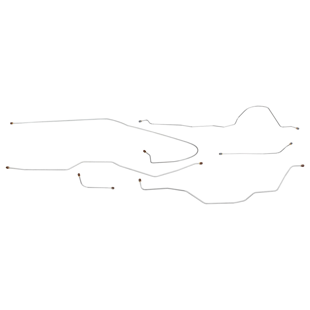 This preformed complete brake line kit will replace all the metal brake lines on your vehicle and includes the master cylinder lines, left front line and right front crossover line, intermediate lines, and rear axle lines/trailing arm lines.