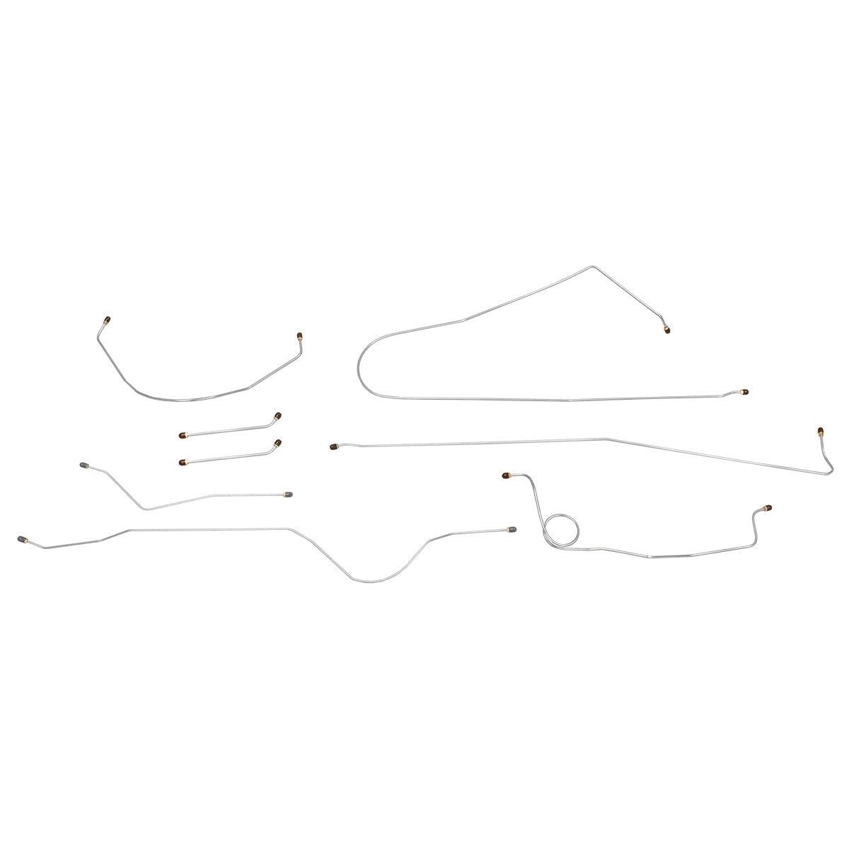 This preformed complete brake line kit will replace all the metal brake lines on your vehicle and includes the master cylinder lines, left front line and right front crossover line, intermediate lines, and rear axle lines/trailing arm lines.