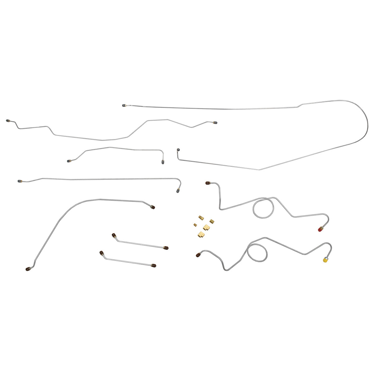 This preformed complete brake line kit will replace all the metal brake lines on your vehicle and includes the master cylinder lines, left front line and right front crossover line, intermediate lines, and rear axle lines/trailing arm lines.