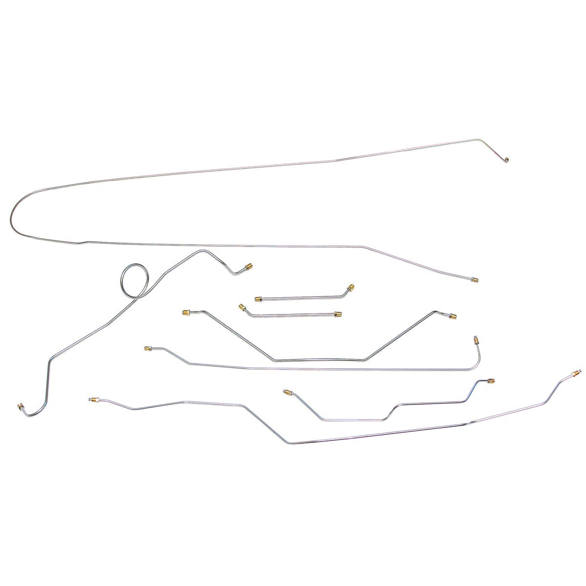 This preformed complete brake line kit will replace all the metal brake lines on your vehicle and includes the master cylinder lines, left front line and right front crossover line, intermediate lines, and rear axle lines/trailing arm lines.