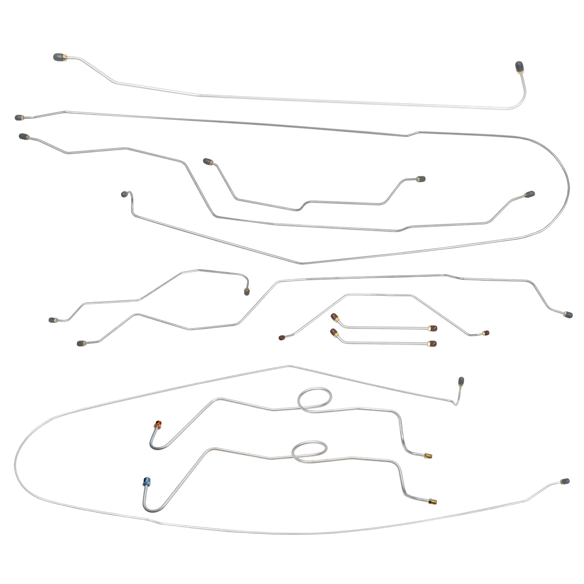 This preformed complete brake line kit will replace all the metal brake lines on your vehicle and includes the master cylinder lines, left front line and right front crossover line, intermediate lines, and rear axle lines/trailing arm lines.