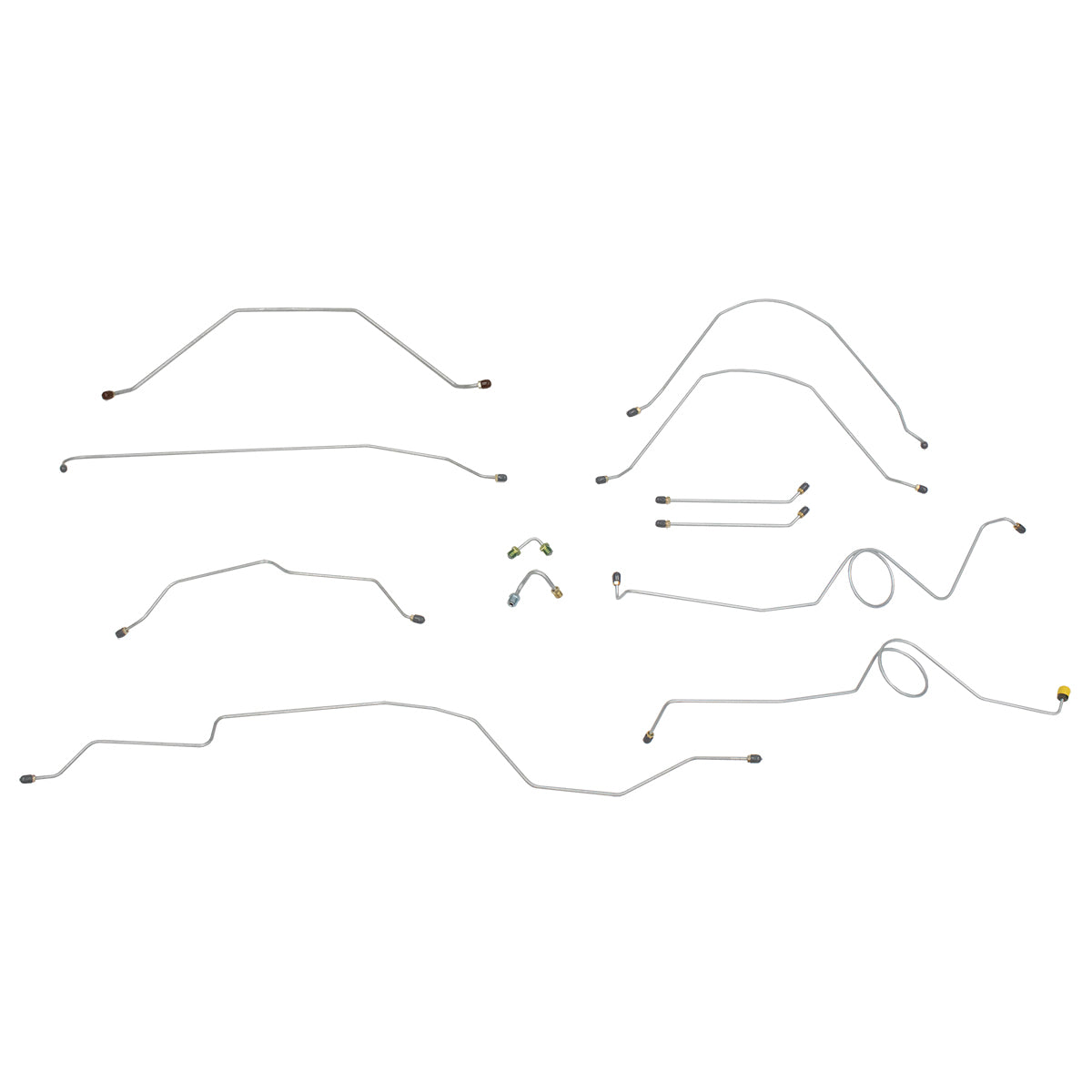 This preformed complete brake line kit will replace all the metal brake lines on your vehicle and includes the master cylinder lines, left front line and right front crossover line, intermediate lines, and rear axle lines/trailing arm lines.