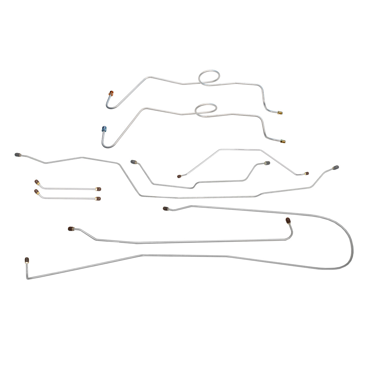 This preformed complete brake line kit will replace all the metal brake lines on your vehicle and includes the master cylinder lines, left front line and right front crossover line, intermediate lines, and rear axle lines/trailing arm lines.
