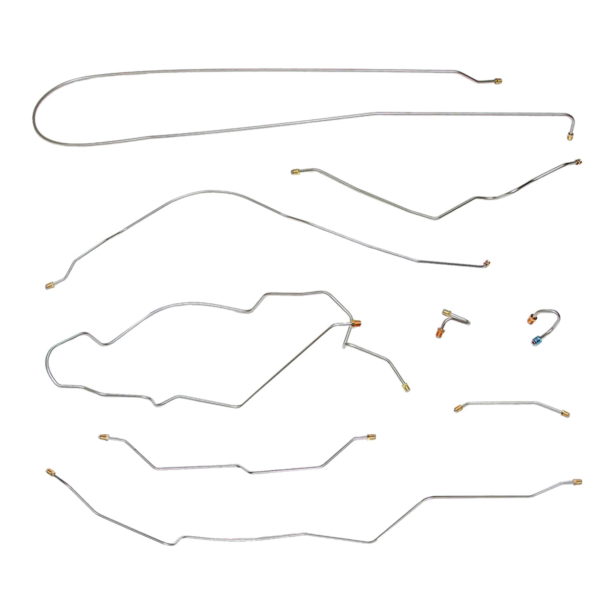 This preformed complete brake line kit will replace all the metal brake lines on your vehicle and includes the master cylinder lines, left front line and right front crossover line, intermediate lines, and rear axle lines/trailing arm lines.