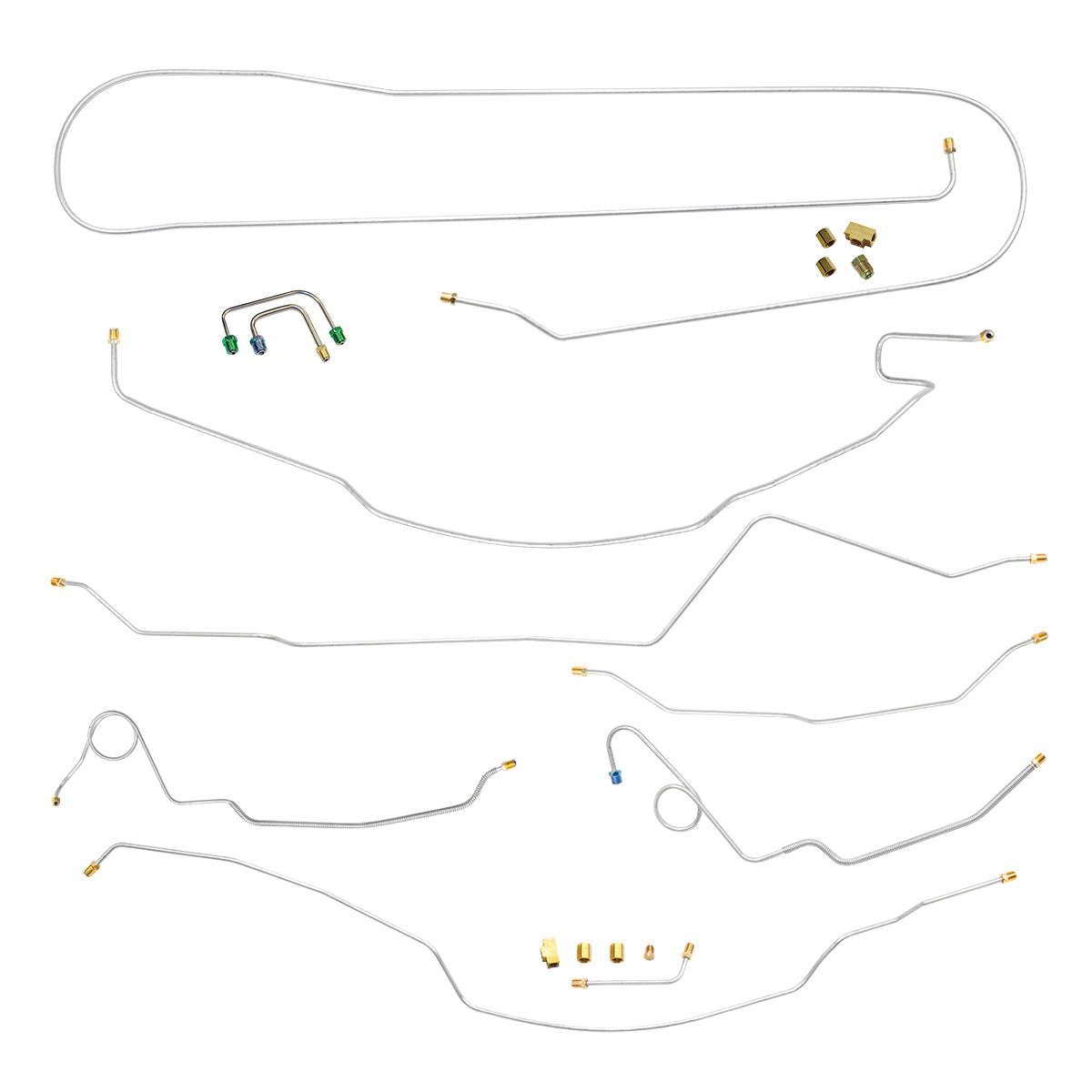 This preformed complete brake line kit will replace all the metal brake lines on your vehicle and includes the master cylinder lines, left front line and right front crossover line, intermediate lines, and rear axle lines/trailing arm lines.