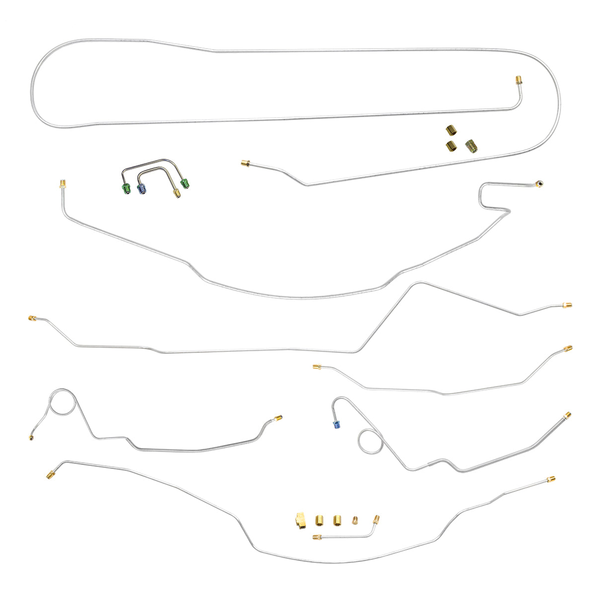 This preformed complete brake line kit will replace all the metal brake lines on your vehicle and includes the master cylinder lines, left front line and right front crossover line, intermediate lines, and rear axle lines/trailing arm lines.
