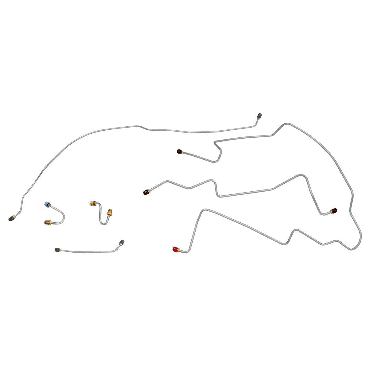 This preformed front brake line kit includes all the metal brake lines to supply the front two wheels of your vehicle and includes the master cylinder lines, left front line, and right front crossover line.