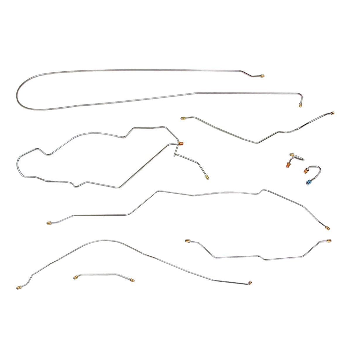 This preformed complete brake line kit will replace all the metal brake lines on your vehicle and includes the master cylinder lines, left front line and right front crossover line, intermediate lines, and rear axle lines/trailing arm lines.