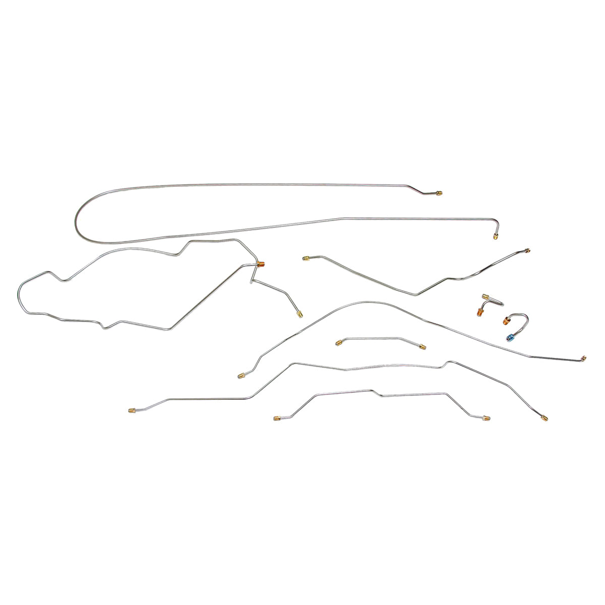 This preformed complete brake line kit will replace all the metal brake lines on your vehicle and includes the master cylinder lines, left front line and right front crossover line, intermediate lines, and rear axle lines/trailing arm lines.
