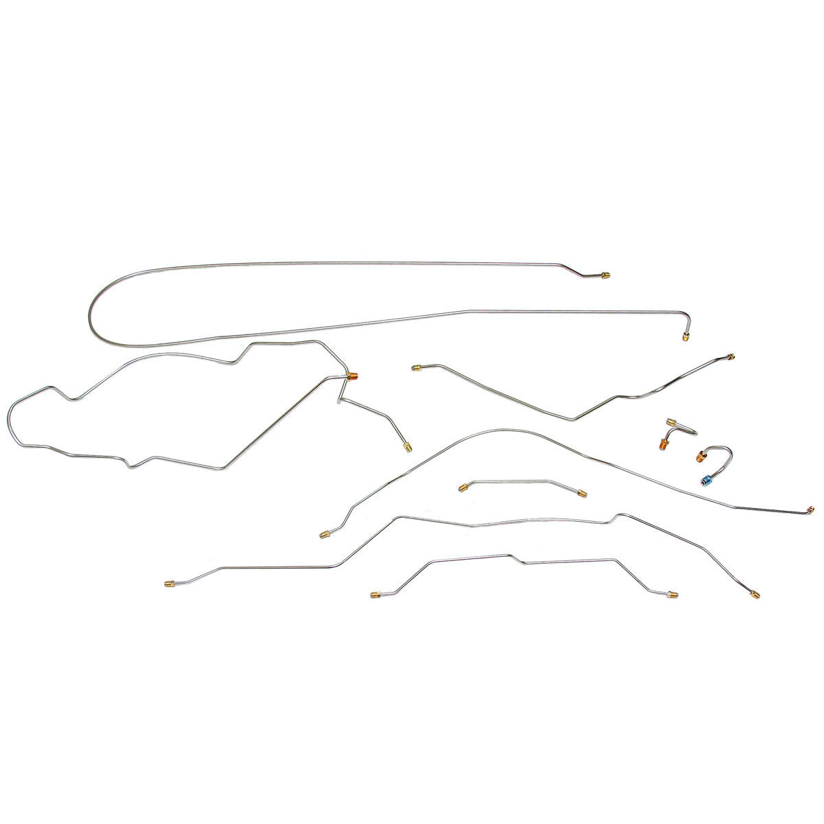 This preformed complete brake line kit will replace all the metal brake lines on your vehicle and includes the master cylinder lines, left front line and right front crossover line, intermediate lines, and rear axle lines/trailing arm lines.