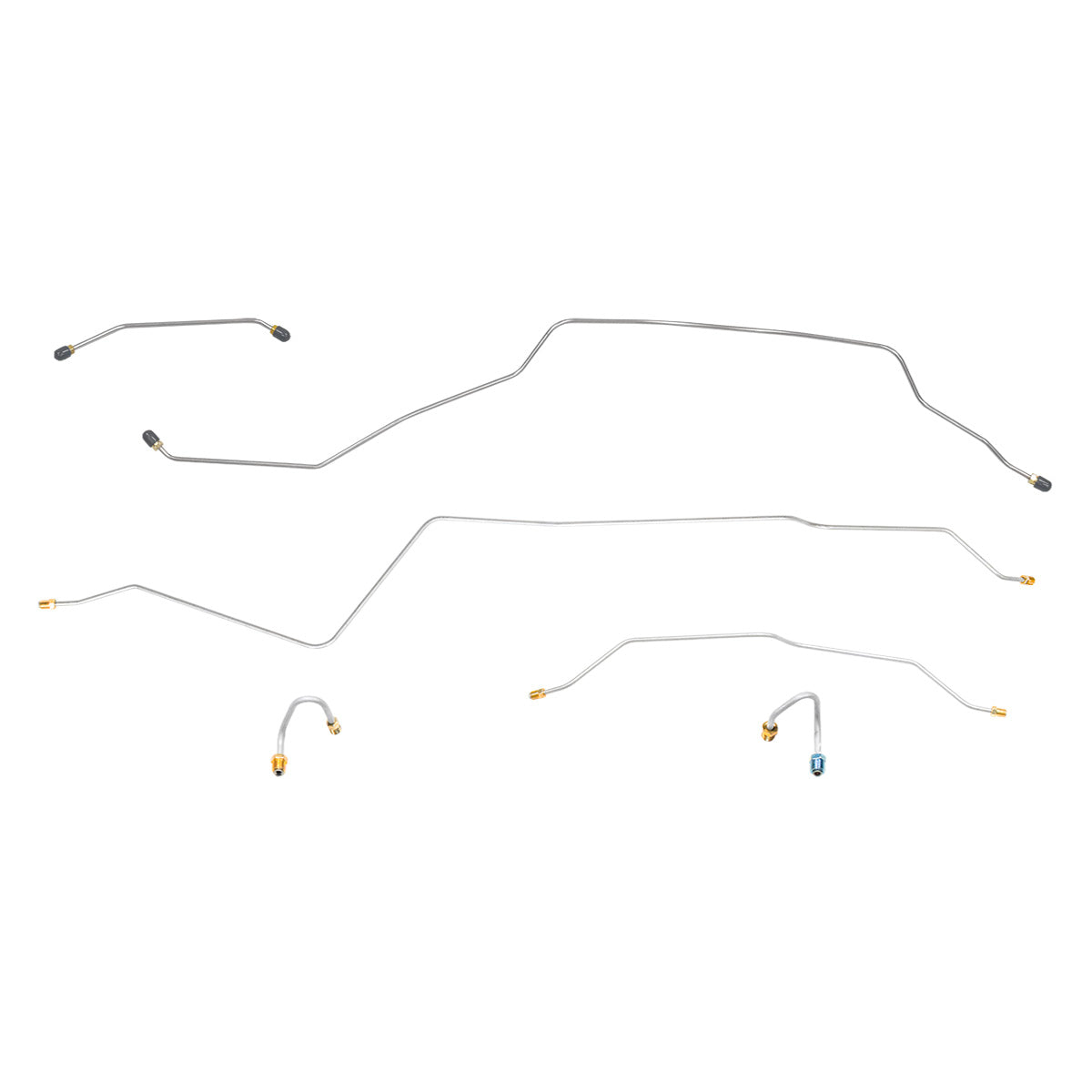 This preformed complete brake line kit will replace all the metal brake lines on your vehicle and includes the master cylinder lines, left front line and right-front crossover line, intermediate lines, and rear axle lines/trailing arm lines.