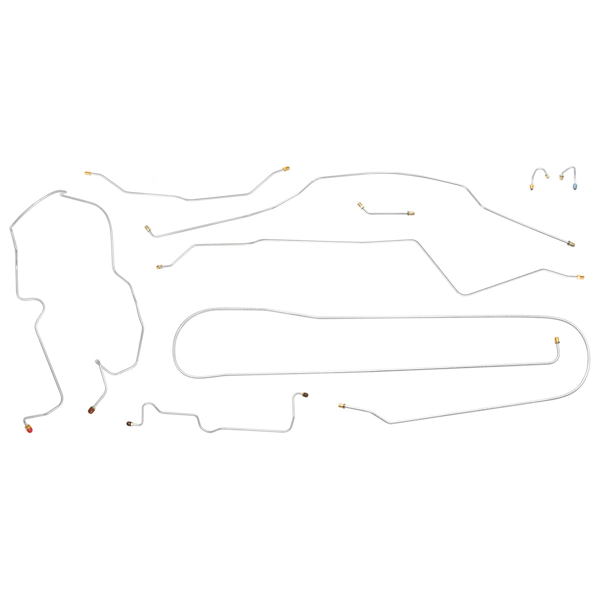 This preformed complete brake line kit will replace all the metal brake lines on your vehicle and includes the master cylinder lines, left front line and right front crossover line, intermediate lines, and rear axle lines/trailing arm lines.
