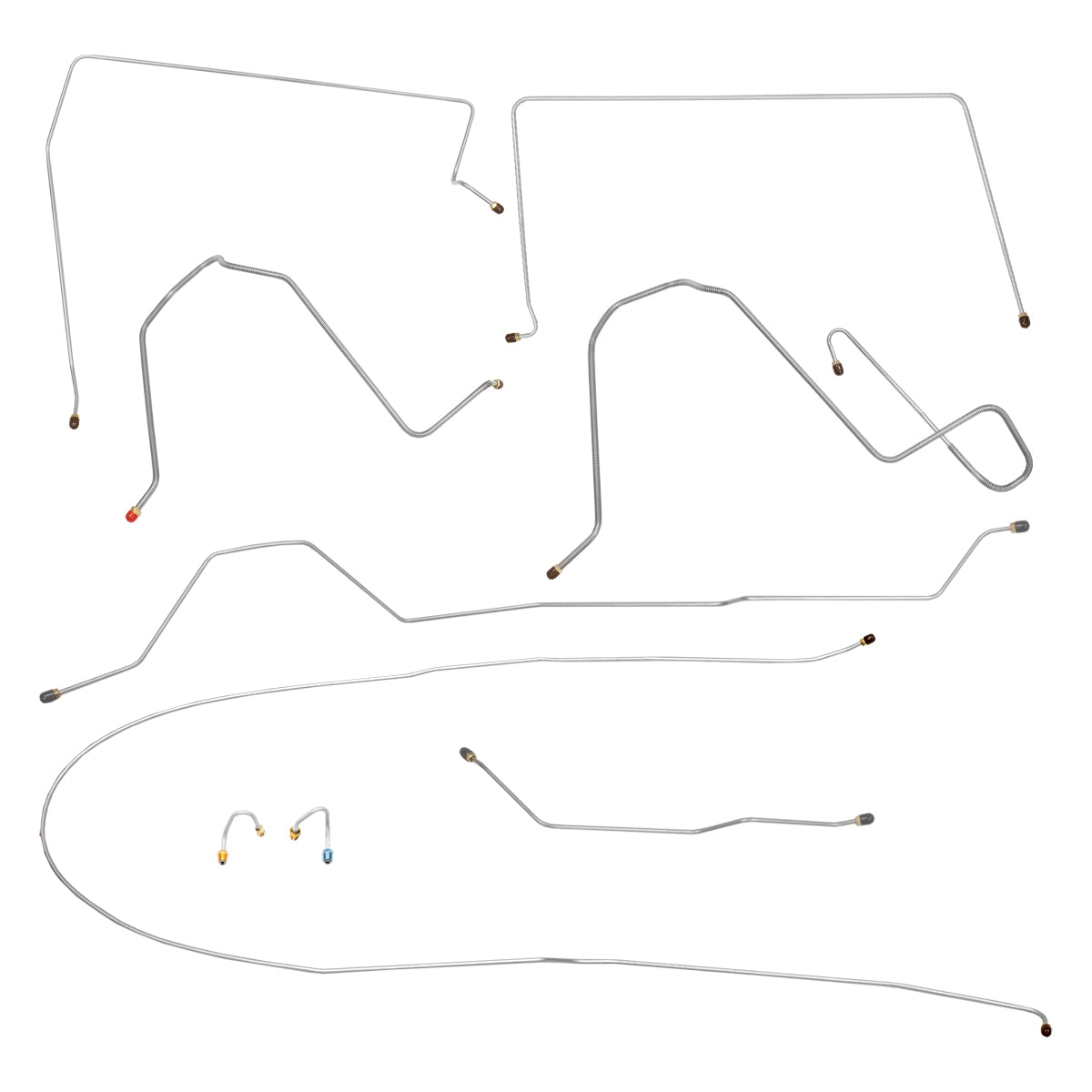 This preformed complete brake line kit will replace all the metal brake lines on your vehicle and includes the master cylinder lines, left front line and right-front crossover line, intermediate lines, and rear axle lines/trailing arm lines.