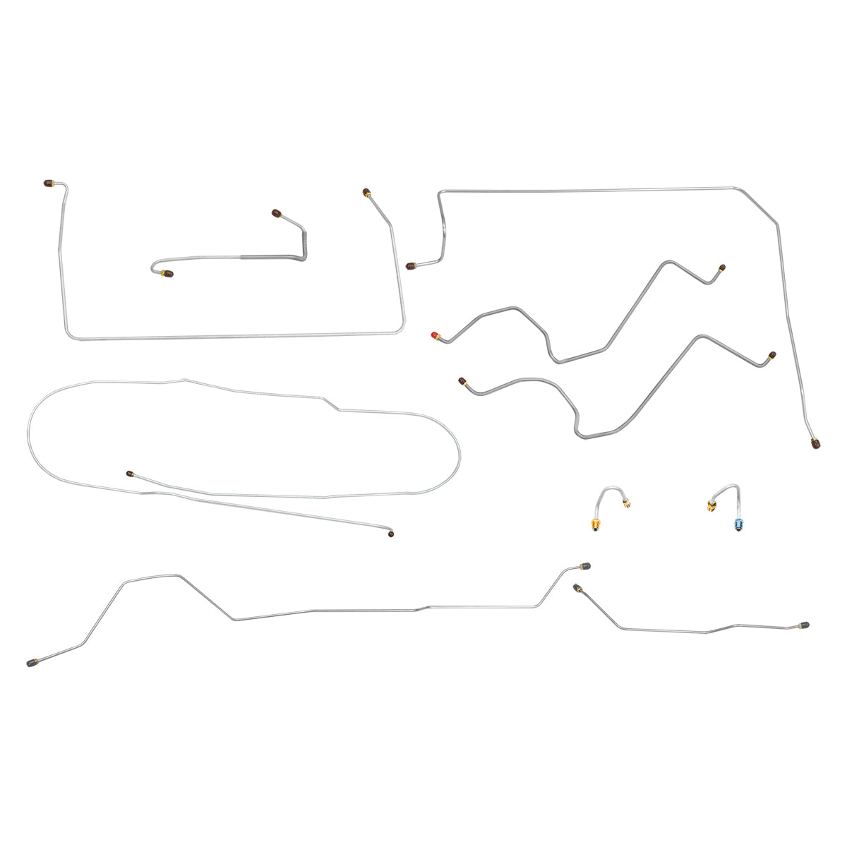This preformed complete brake line kit will replace all the metal brake lines on your vehicle and includes the master cylinder lines, left front line and right-front crossover line, intermediate lines, and rear axle lines/trailing arm lines.