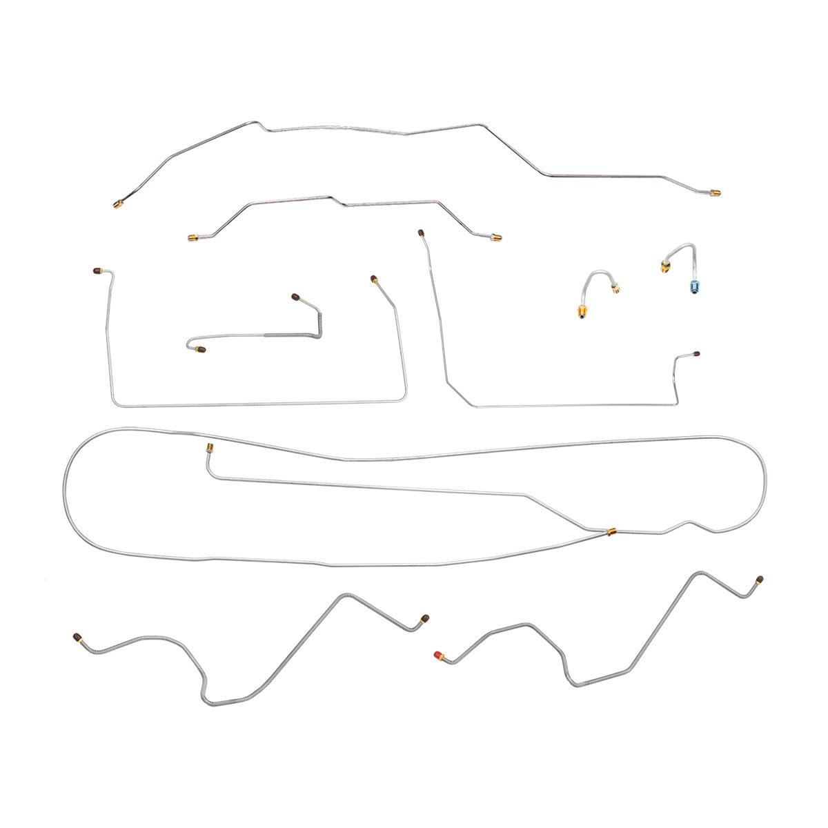 This preformed complete brake line kit will replace all the metal brake lines on your vehicle and includes the master cylinder lines, left front line and right-front crossover line, intermediate lines, and rear axle lines/trailing arm lines.