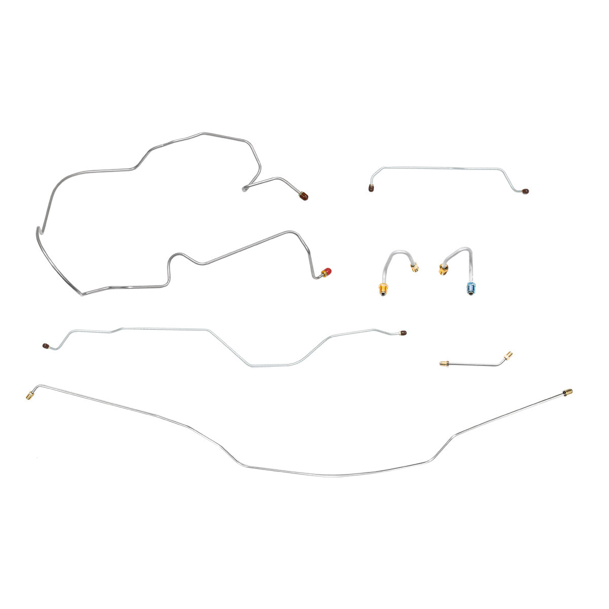 This preformed complete brake line kit will replace all the metal brake lines on your vehicle and includes the master cylinder lines, left front line and right-front crossover line, intermediate lines, and rear axle lines/trailing arm lines.