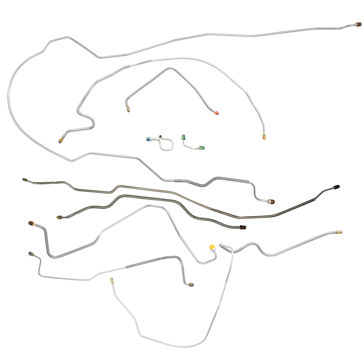 This preformed complete brake line kit will replace all the metal brake lines on your vehicle and includes the master cylinder lines, left front line and right-front crossover line, intermediate lines, and rear axle lines/trailing arm lines.