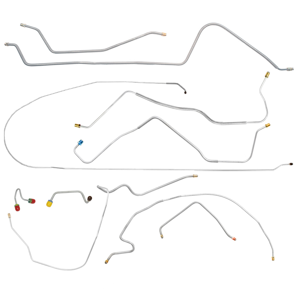This preformed complete brake line kit will replace all the metal brake lines on your vehicle and includes the master cylinder lines, left front line and right-front crossover line, intermediate lines, and rear axle lines/trailing arm lines.