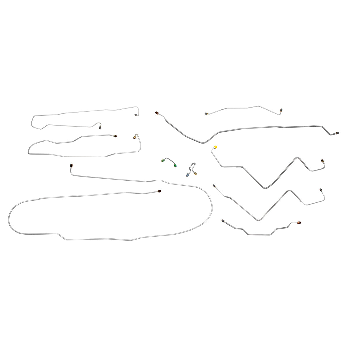 This preformed complete brake line kit will replace all the metal brake lines on your vehicle and includes the master cylinder lines, left front line and right front crossover line, intermediate lines, and rear axle lines/trailing arm lines.
