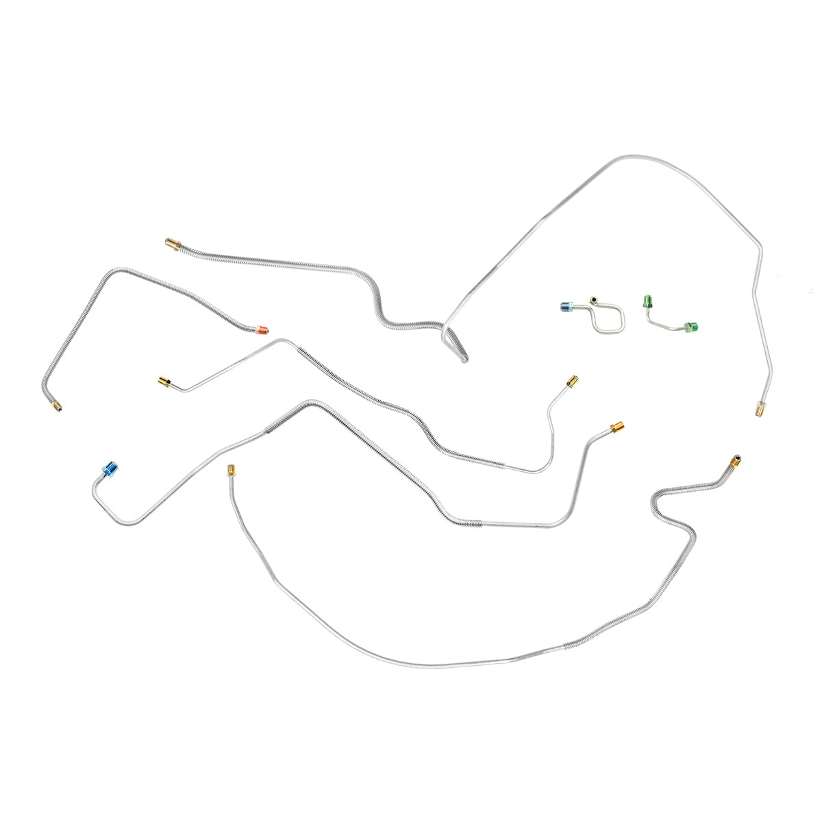 This preformed front brake line kit includes all the metal brake lines to supply the front two wheels of your vehicle and includes the master cylinder lines, left front line, and right front crossover line.
