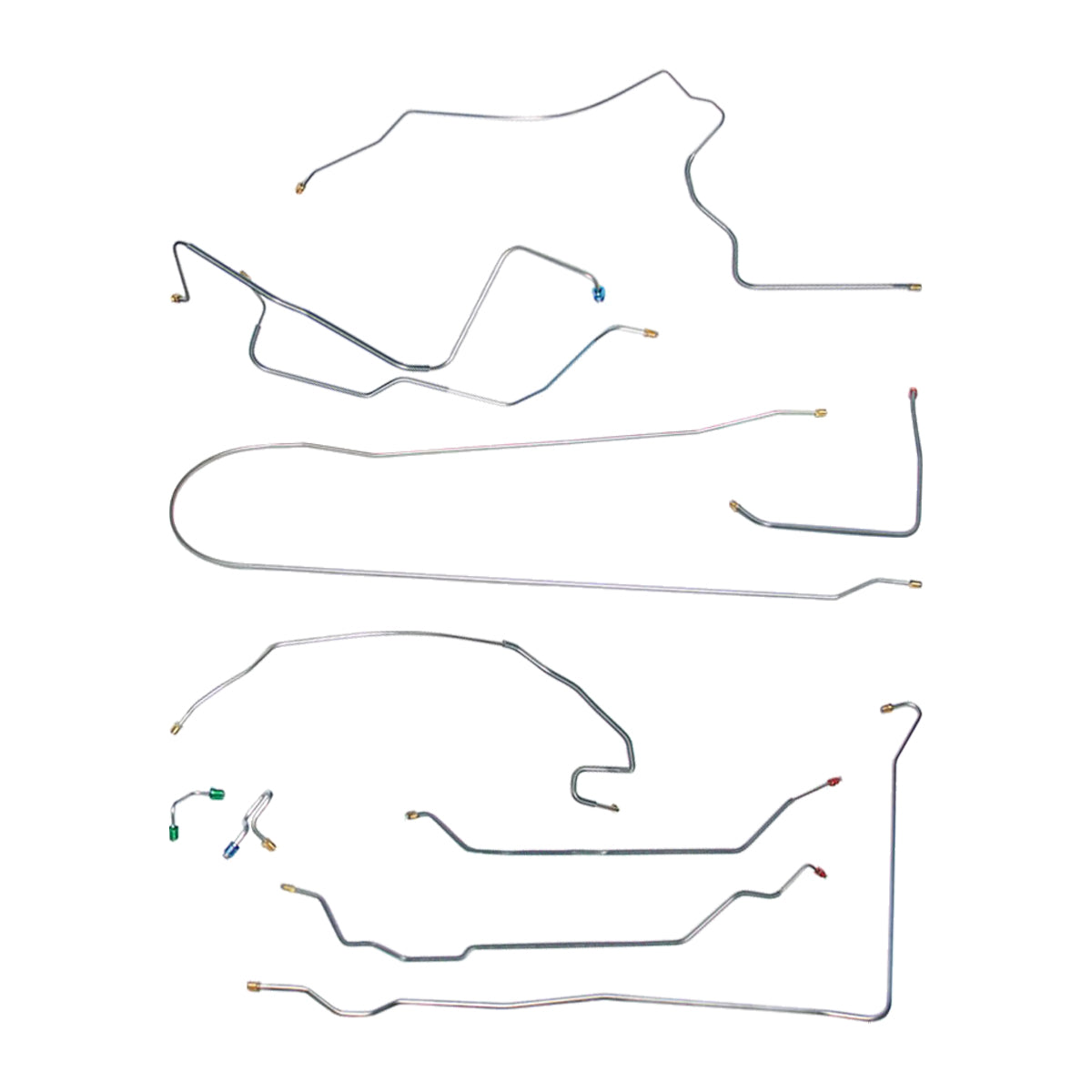 This preformed complete brake line kit will replace all the metal brake lines on your vehicle and includes the master cylinder lines, left front line and right front crossover line, intermediate lines, and rear axle lines/trailing arm lines.
