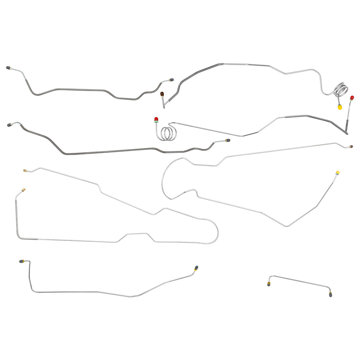 This preformed complete brake line kit will replace all the metal brake lines on your vehicle and includes the master cylinder lines, left front line and right-front crossover line, intermediate lines, and rear axle lines/trailing arm lines.