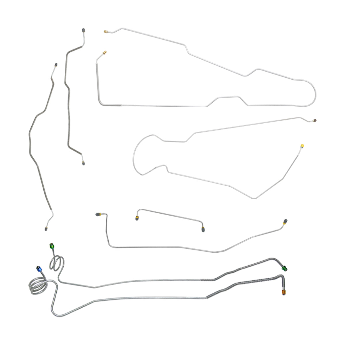 This preformed complete brake line kit will replace all the metal brake lines on your vehicle and includes the master cylinder lines, left front line and right-front crossover line, intermediate lines, and rear axle lines/trailing arm lines.