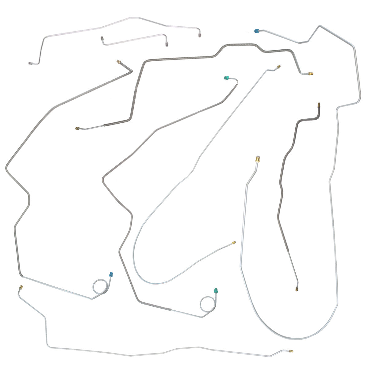 This preformed complete brake line kit will replace all the metal brake lines on your vehicle and includes the master cylinder lines, left front line and right front crossover line, intermediate lines, and rear axle lines/trailing arm lines.
