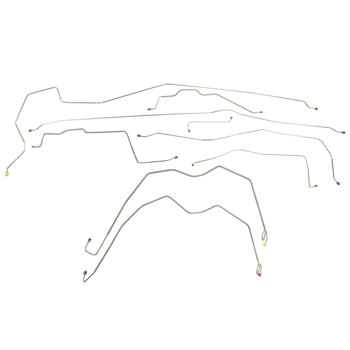 This preformed complete brake line kit will replace all the metal brake lines on your vehicle and includes the master cylinder lines, left front line and right front crossover line, intermediate lines, and rear axle lines/trailing arm lines.