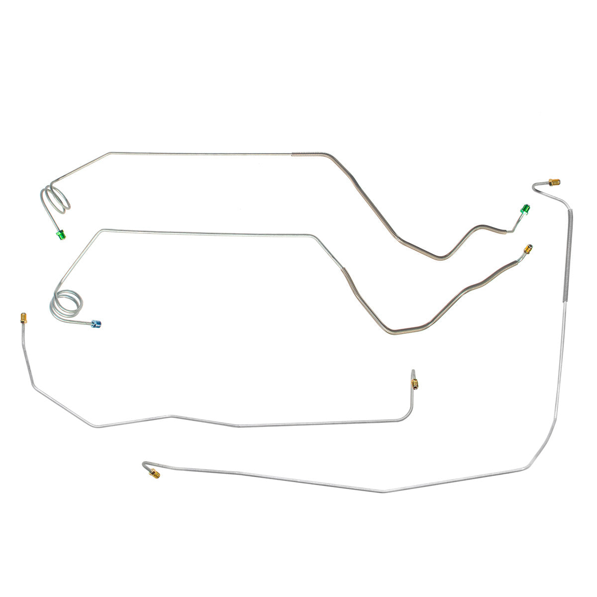 This preformed front brake line kit includes all the metal brake lines to supply the front two wheels of your vehicle and includes the master cylinder lines, left front line, and right front crossover line.