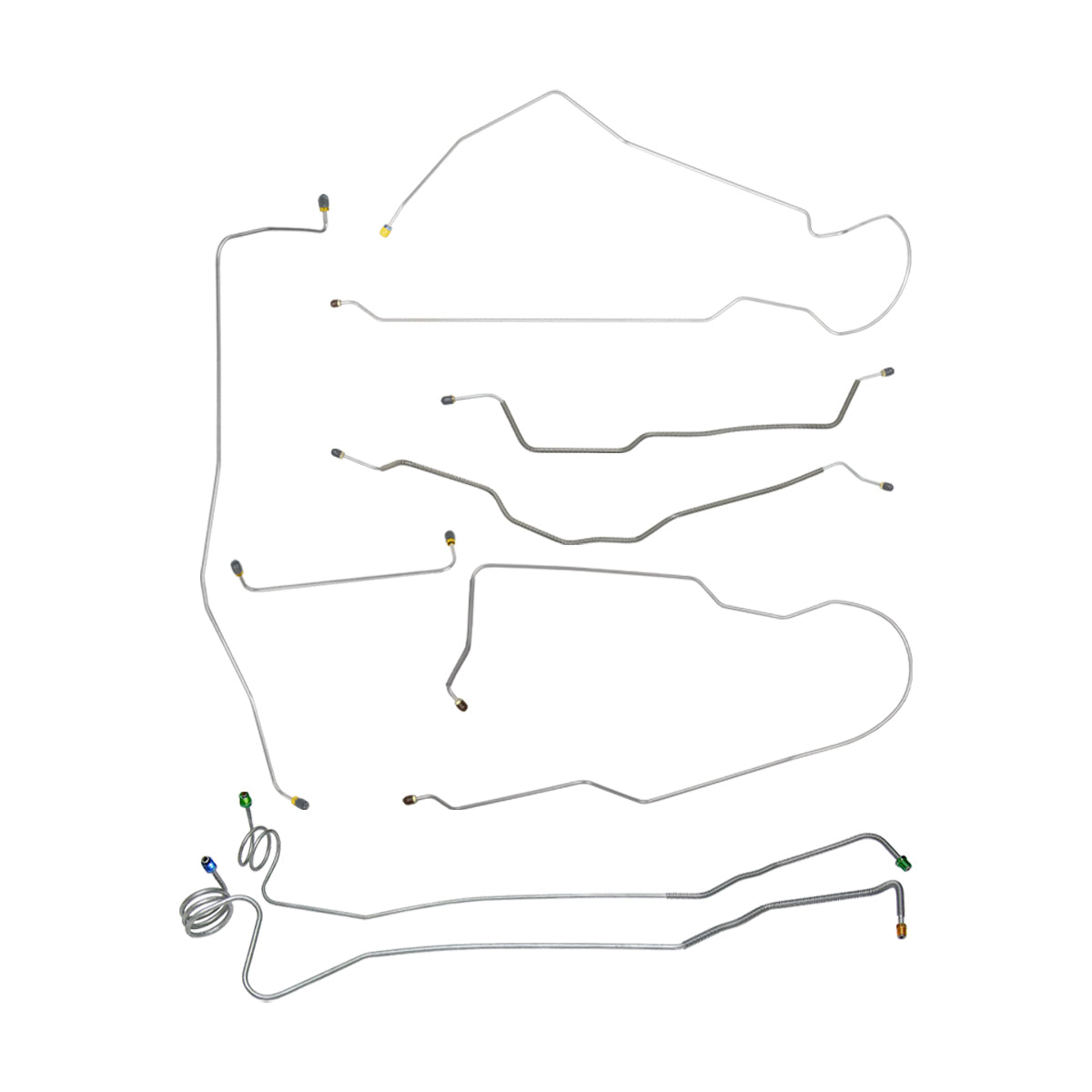 This preformed complete brake line kit will replace all the metal brake lines on your vehicle and includes the master cylinder lines, left front line and right front crossover line, intermediate lines, and rear axle lines/trailing arm lines.