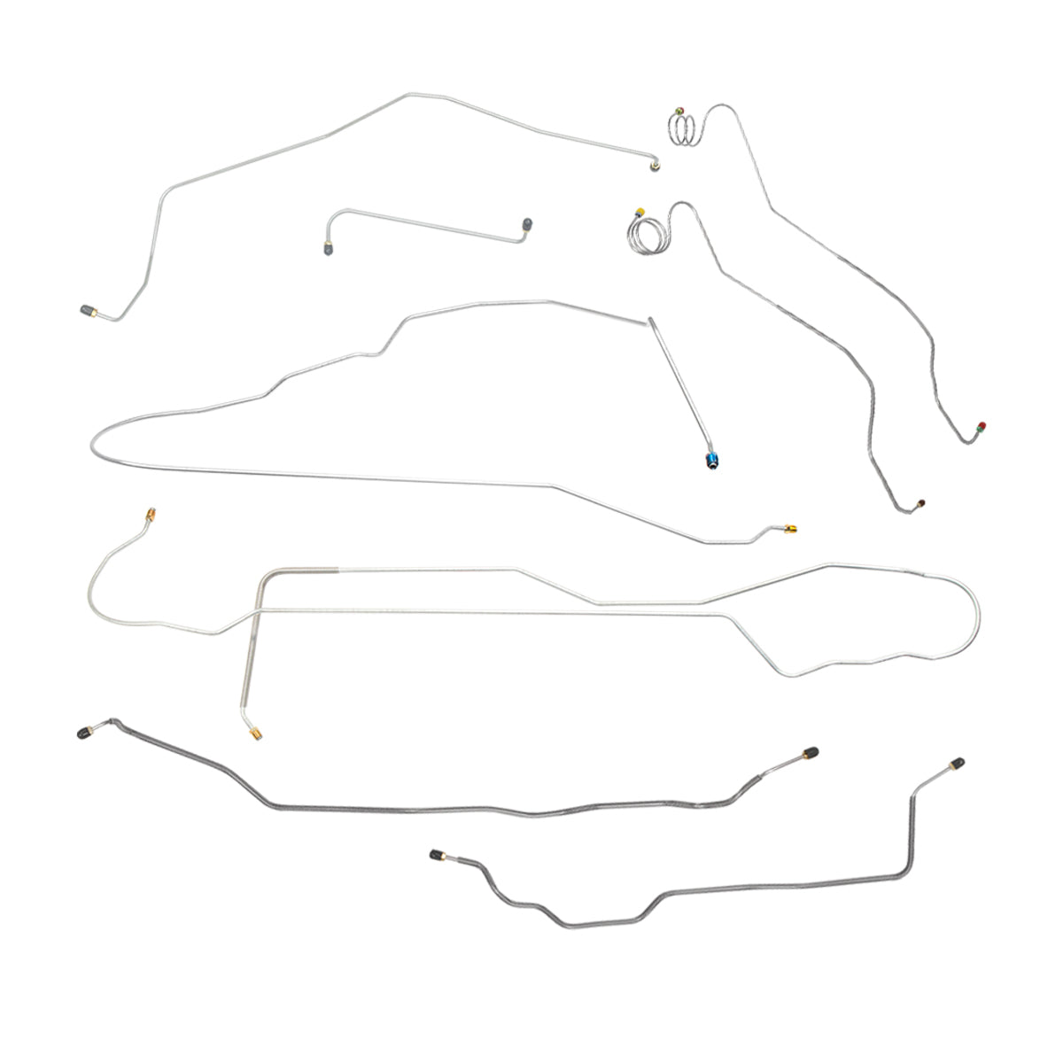 This preformed complete brake line kit will replace all the metal brake lines on your vehicle and includes the master cylinder lines, left front line and right front crossover line, intermediate lines, and rear axle lines/trailing arm lines.