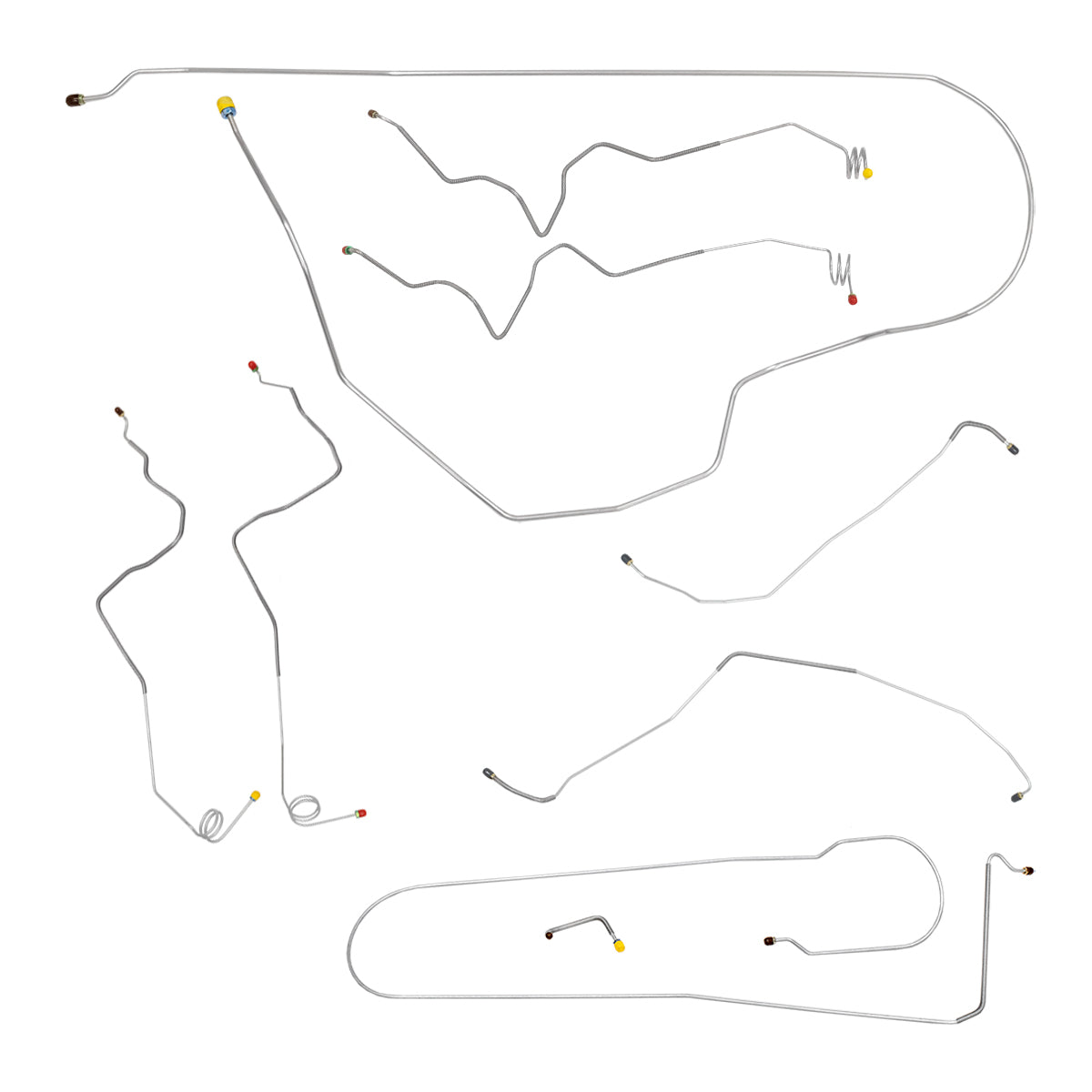 This preformed complete brake line kit will replace all the metal brake lines on your vehicle and includes the master cylinder lines, left front line and right front crossover line, intermediate lines, and rear axle lines/trailing arm lines.