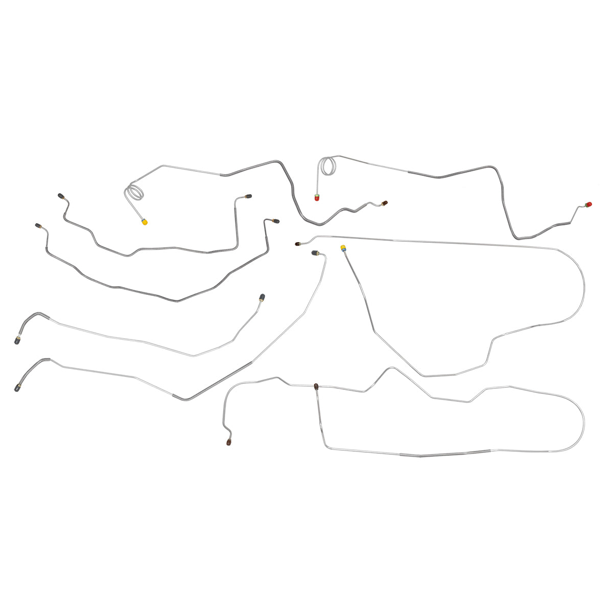 This preformed complete brake line kit will replace all the metal brake lines on your vehicle and includes the master cylinder lines, left front line and right-front crossover line, intermediate lines, and rear axle lines/trailing arm lines.