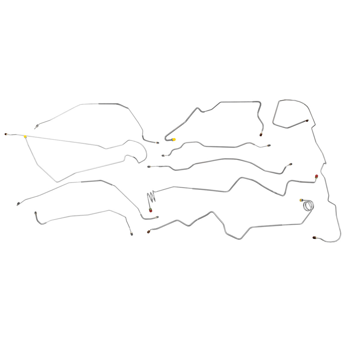This preformed complete brake line kit will replace all the metal brake lines on your vehicle and includes the master cylinder lines, left front line and right front crossover line, intermediate lines, and rear axle lines/trailing arm lines.