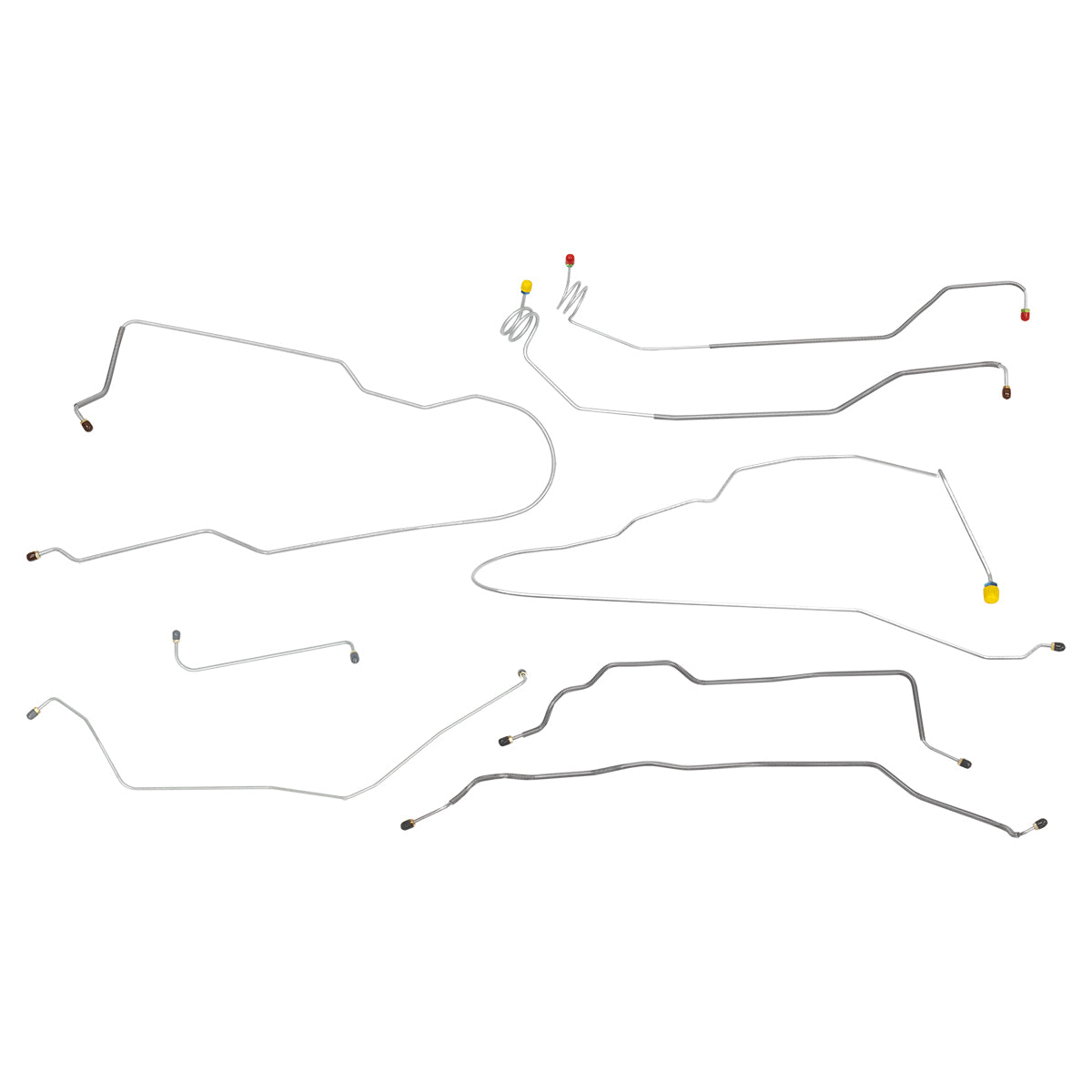 This preformed complete brake line kit will replace all the metal brake lines on your vehicle and includes the master cylinder lines, left front line and right front crossover line, intermediate lines, and rear axle lines/trailing arm lines.