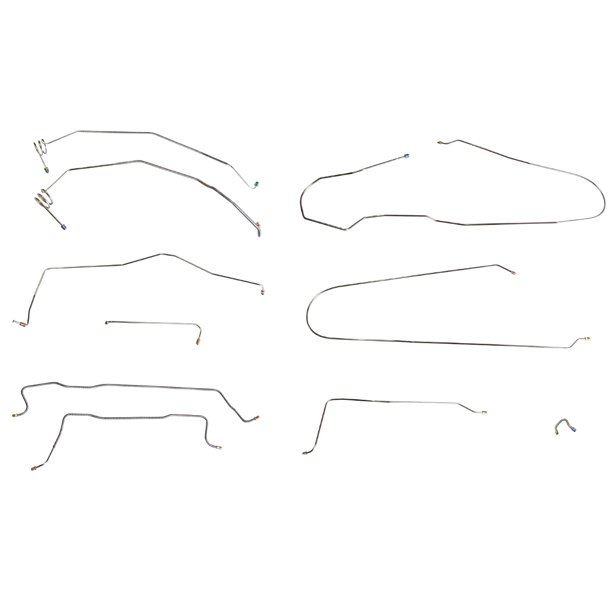 This preformed complete brake line kit will replace all the metal brake lines on your vehicle and includes the master cylinder lines, left front line and right front crossover line, intermediate lines, and rear axle lines/trailing arm lines.