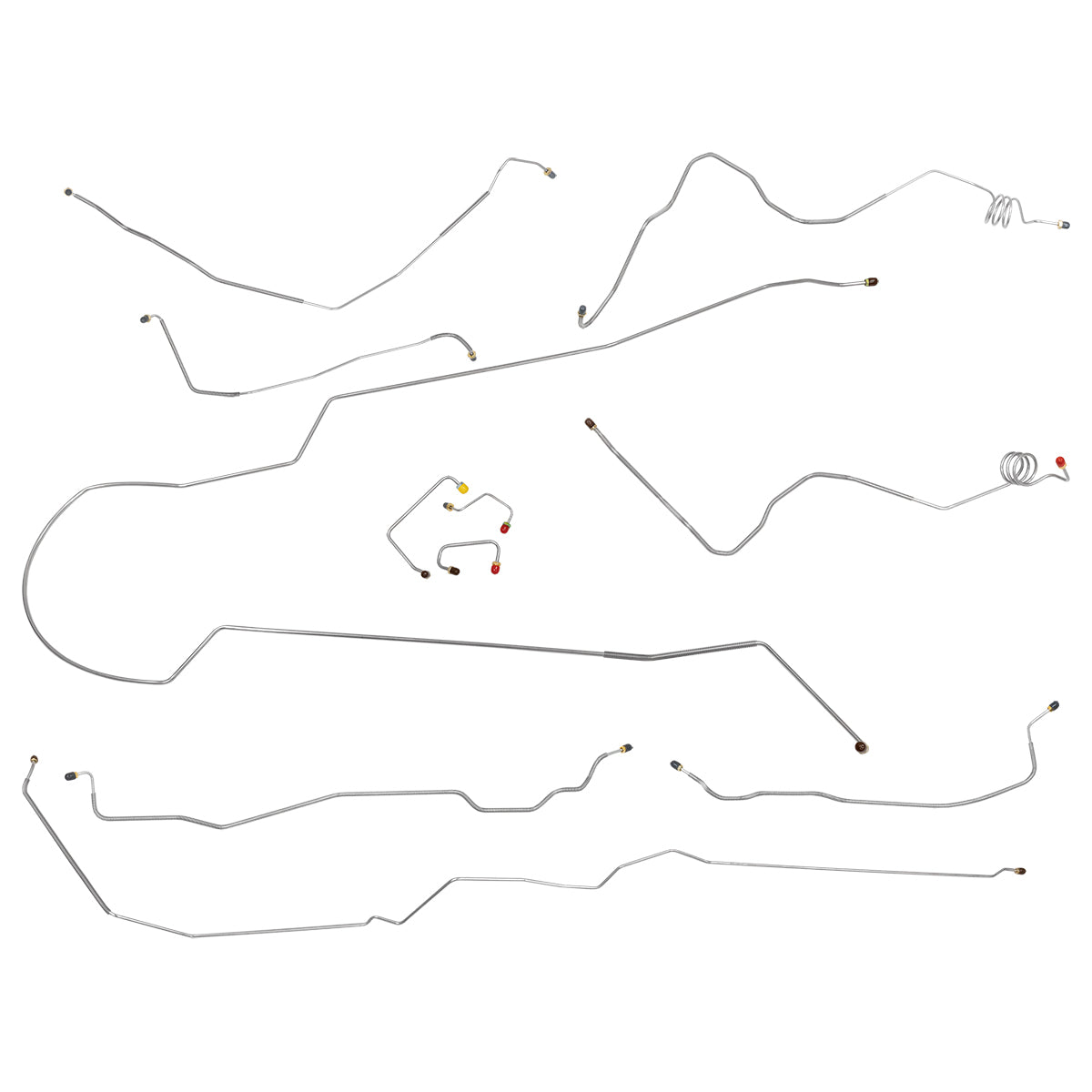This preformed complete brake line kit will replace all the metal brake lines on your vehicle and includes the master cylinder lines, left front line and right front crossover line, intermediate lines, and rear axle lines/trailing arm lines.