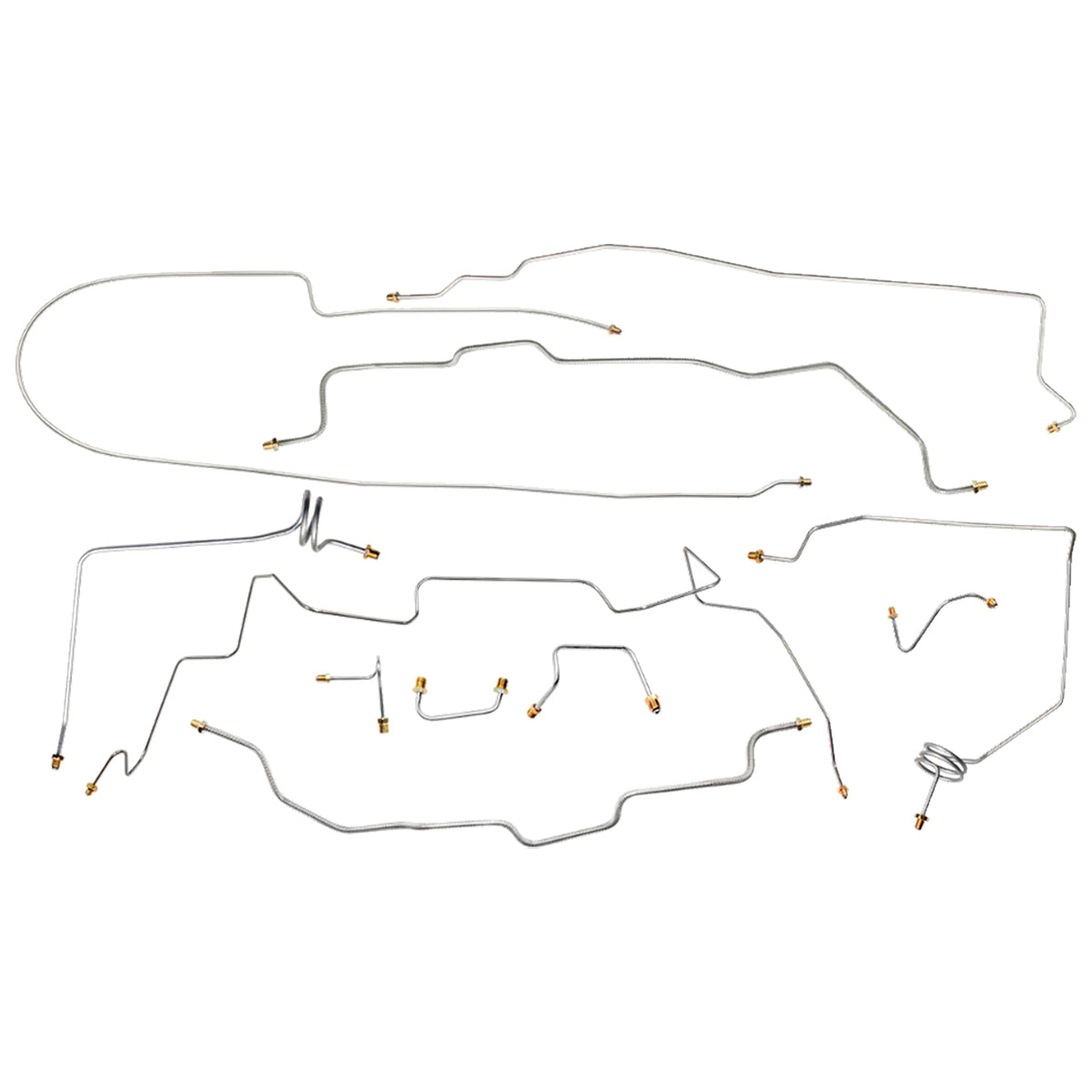 This preformed complete brake line kit will replace all the metal brake lines on your vehicle and includes the master cylinder lines, left front line and right front crossover line, intermediate lines, and rear axle lines/trailing arm lines.