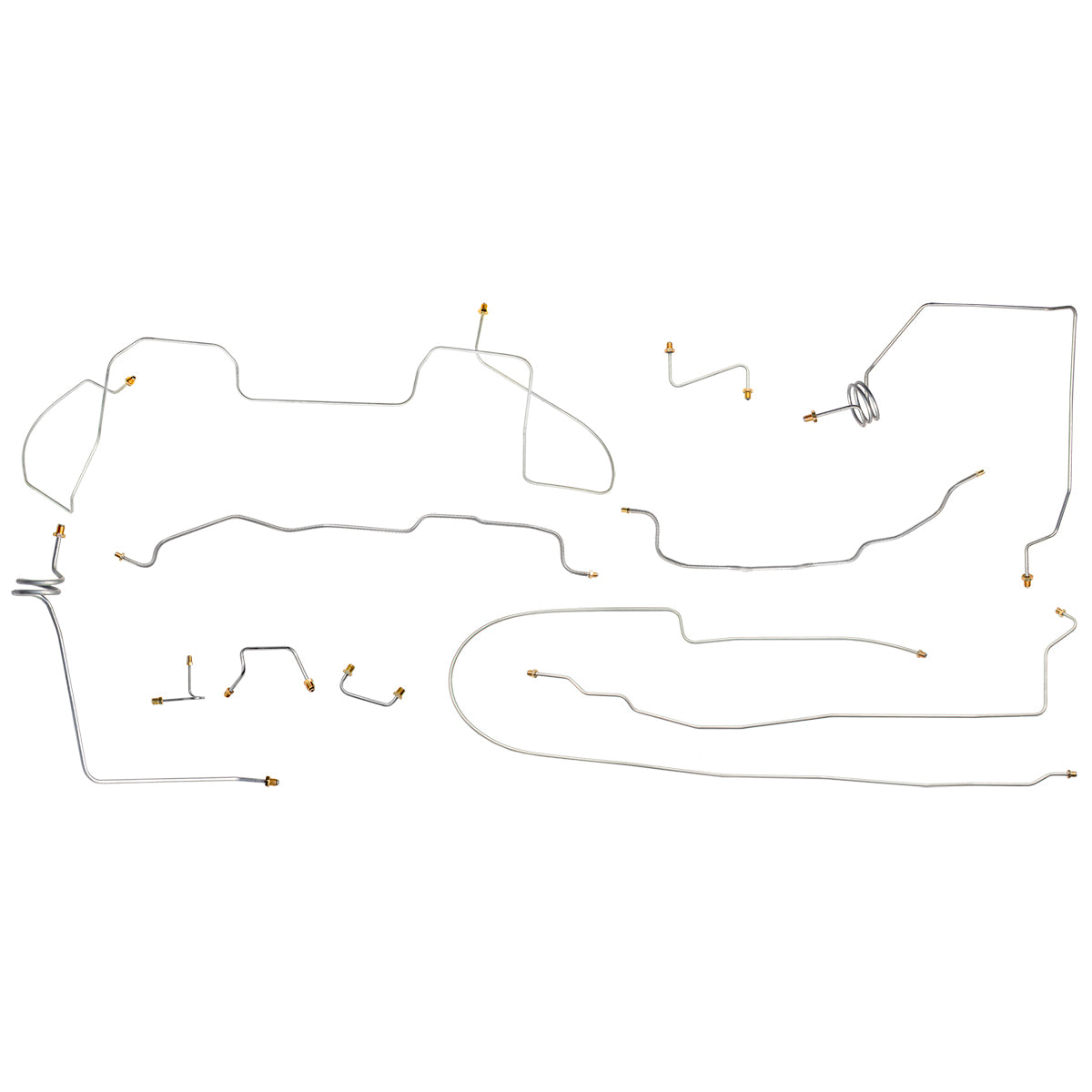 This preformed complete brake line kit will replace all the metal brake lines on your vehicle and includes the master cylinder lines, left front line and right front crossover line, intermediate lines, and rear axle lines/trailing arm lines.